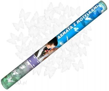 Tuba strzelająca białymi motylkamiWielkość: 60cmOpakowanie: 1 sztWystarczy przekręcić podstawę tuby by uzyskać efektowny wystrzał konfetti.Produkt nie zawiera środków pirotechnicznych, konfetti wystrzeliwane jest przez sprężone powietrze.